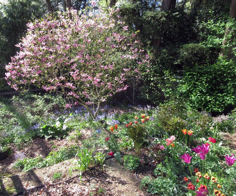 Magnolia and tulips in a member’s garden, April 18, 2024